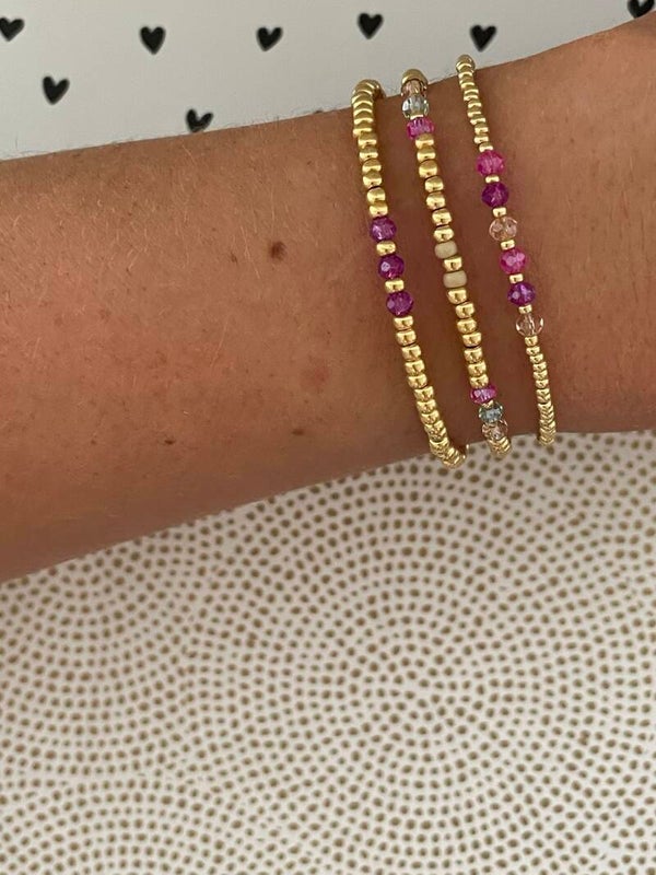 Je kunt de armbanden allemaal super mooi met elkaar mixen en matchen. De kralen zijn 2mm of 3mm miyuki rocailles glaskralen van zeer goede kwaliteit gecombineerd met prachtige gekleurde facetkralen. De sluiting van de armband is van RVS.