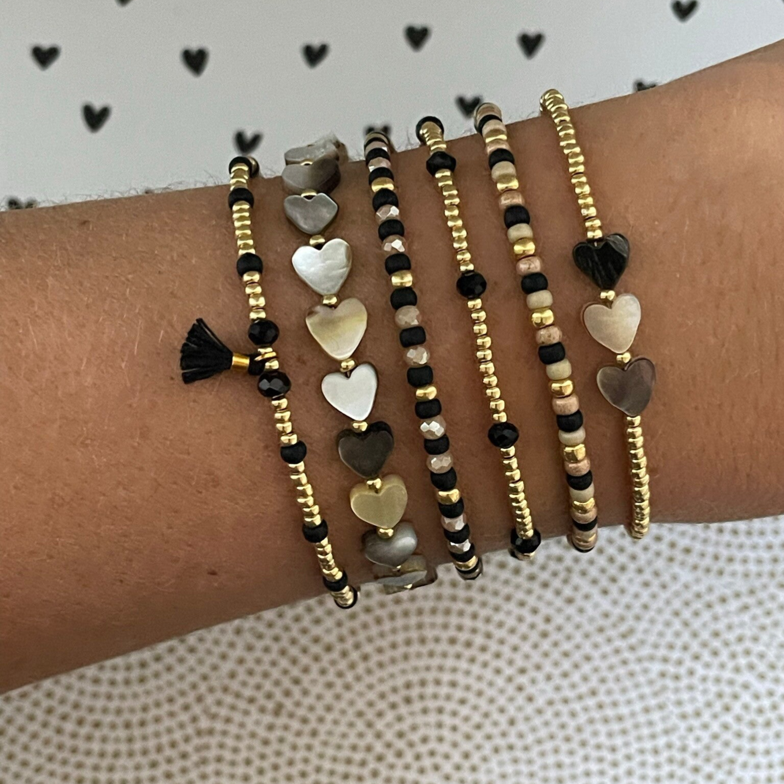Je kunt de armbanden allemaal super mooi met elkaar mixen en matchen. De kralen zijn 2mm of 3mm miyuki rocailles glaskralen van zeer goede kwaliteit gecombineerd met prachtige facetkralen. Alles in de kleuren, zwart, goud, taupe & caramel.