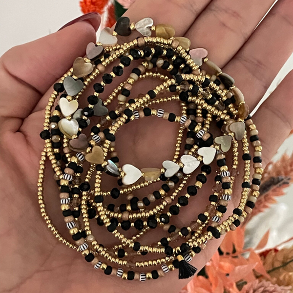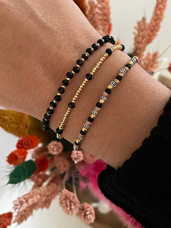 Je kunt de armbanden allemaal super mooi met elkaar mixen en matchen. De kralen zijn 2mm of 3mm miyuki rocailles glaskralen van zeer goede kwaliteit gecombineerd met prachtige facetkralen. Alles in de kleuren, zwart, goud, taupe & caramel.