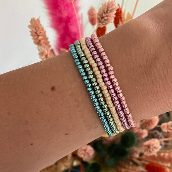 Je kunt de armbanden allemaal heerlijk met elkaar mixen en matchen. De kralen zijn 2mm of 3mm miyuki rocailles glaskralen van zeer goede kwaliteit.