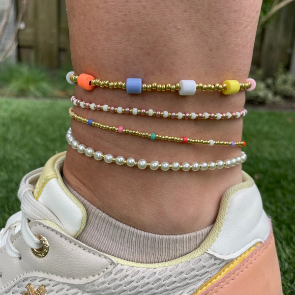 Hele mooie kralen enkelband van de nieuwe zomer collectie van Label Lazise.