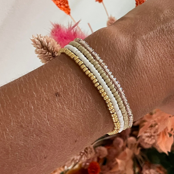 Je kunt de armbanden allemaal heerlijk met elkaar mixen en matchen. De kralen zijn 3mm miyuki rocailles glaskralen van zeer goede kwaliteit.