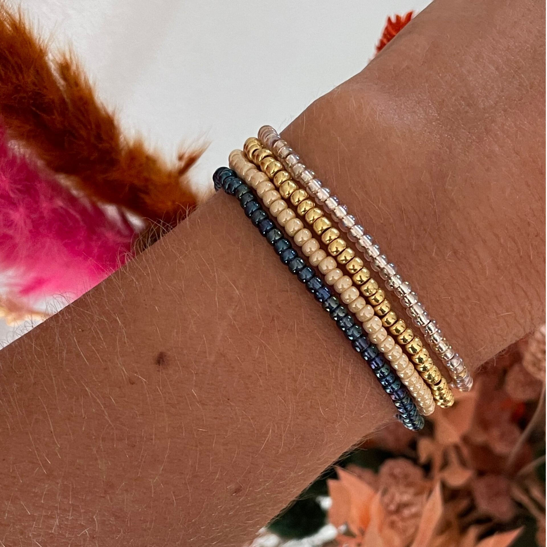 Je kunt de armbanden allemaal super mooi met elkaar mixen en matchen met de andere Lazise armbanden. De kralen zijn 2mm of 3mm miyuki rocailles glaskralen van zeer goede kwaliteit gecombineerd met facetkralen, parels of schelpkralen. De sluiting van de armband is van RVS.