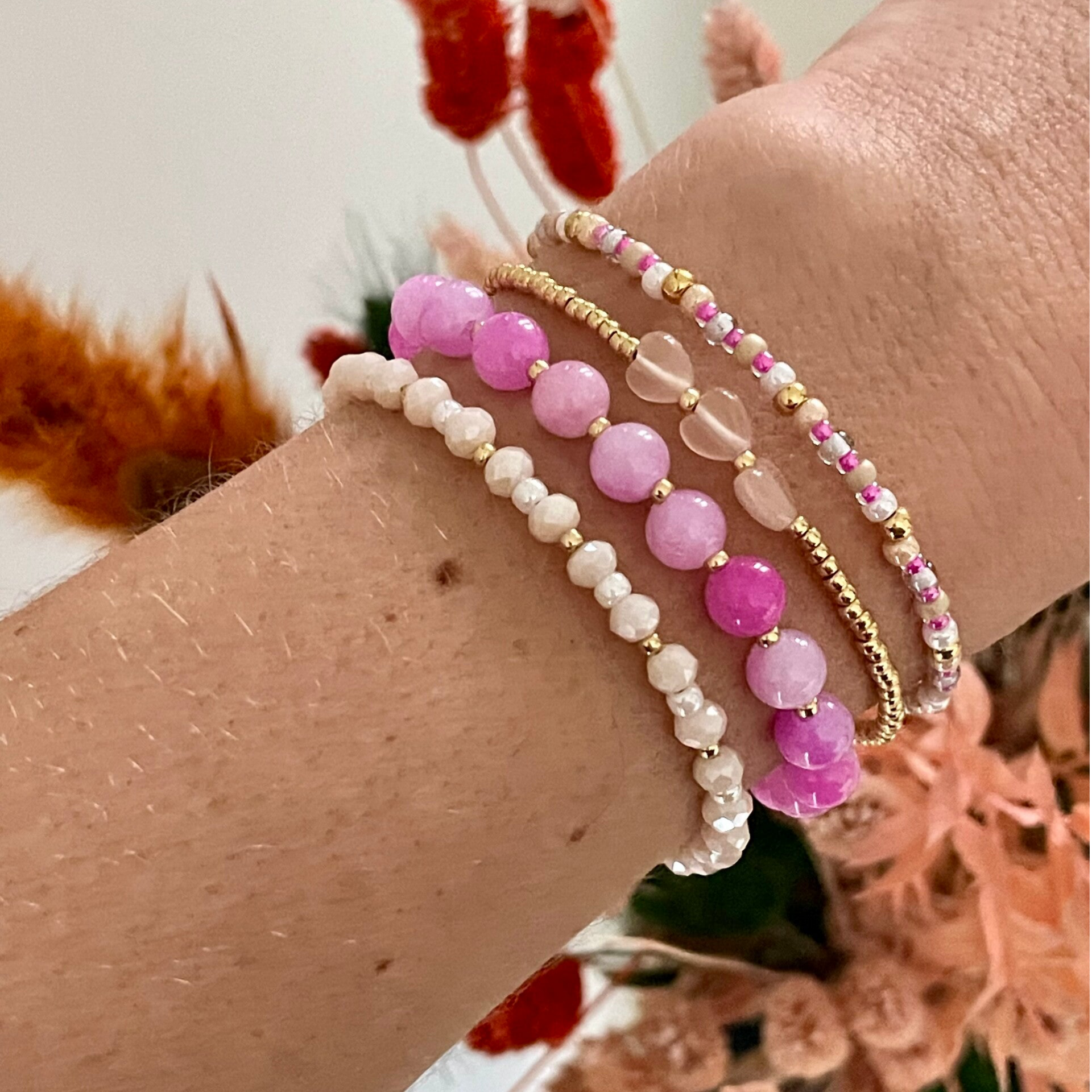 De eerste collectie van 2025 is er.. en daarin zie je veel paars/roze, beige, wit en grijs, natuurlijk in de mix met veel goud. Super tof om weer lekker te matchen en een nieuwe frisse armparty samen te stellen.