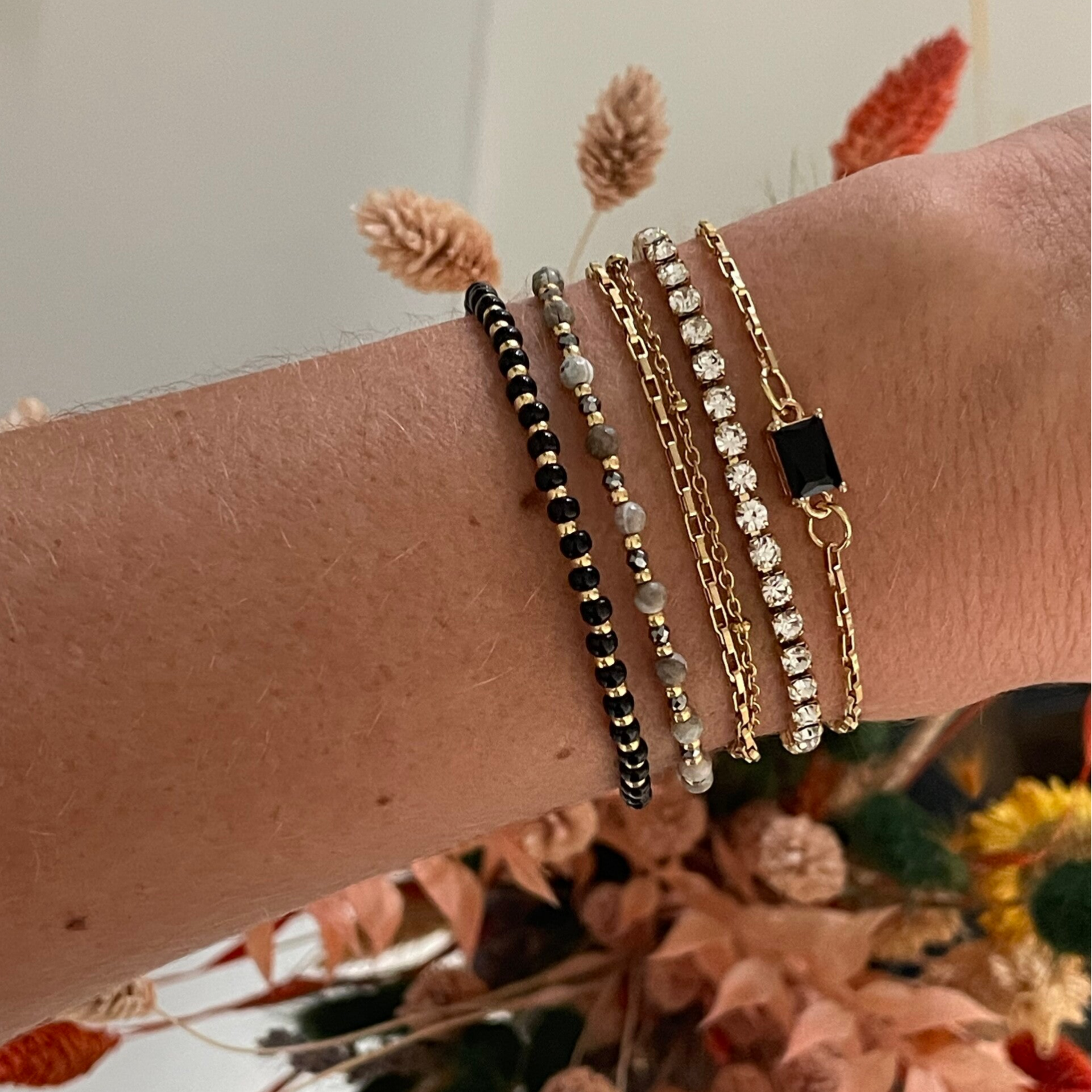De meeste armbanden uit de collectie zijn gemaakt met miyuki kralen, vaak met een duracoat zodat de kleur van de kralen lang mooi blijft. Daarnaast is er gebruik gemaakt van natuursteen kralen en facetkralen.