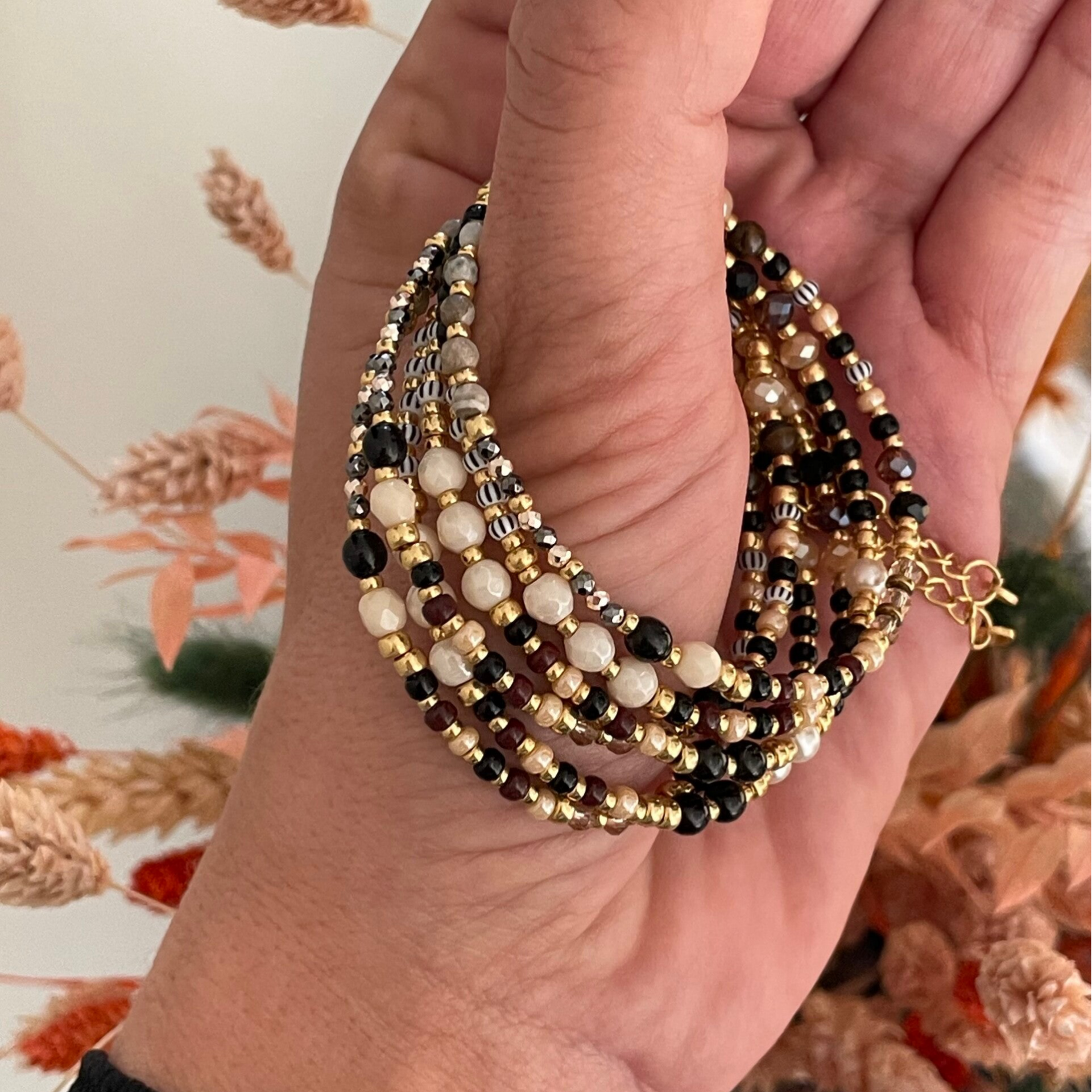 De meeste armbanden uit de collectie zijn gemaakt met miyuki kralen, vaak met een duracoat zodat de kleur van de kralen lang mooi blijft. Daarnaast is er gebruik gemaakt van natuursteen kralen en facetkralen.