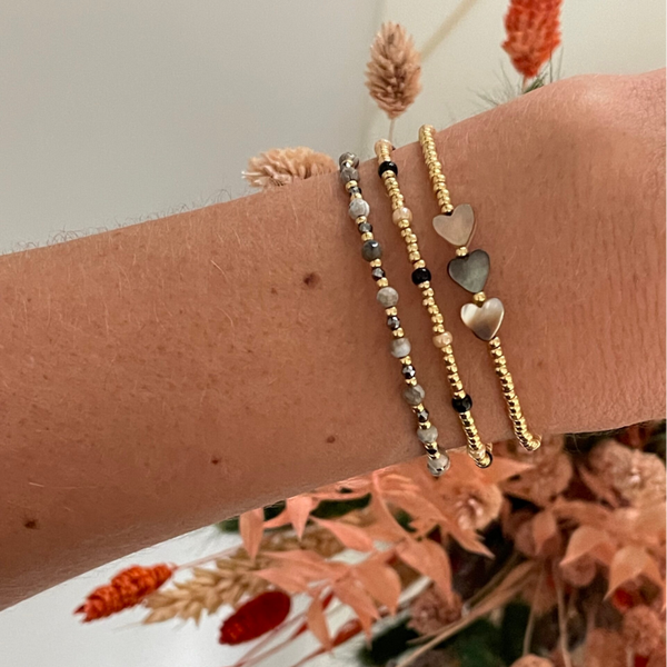 De meeste armbanden uit de collectie zijn gemaakt met miyuki kralen, vaak met een duracoat zodat de kleur van de kralen lang mooi blijft. Daarnaast is er gebruik gemaakt van natuursteen kralen en facetkralen.