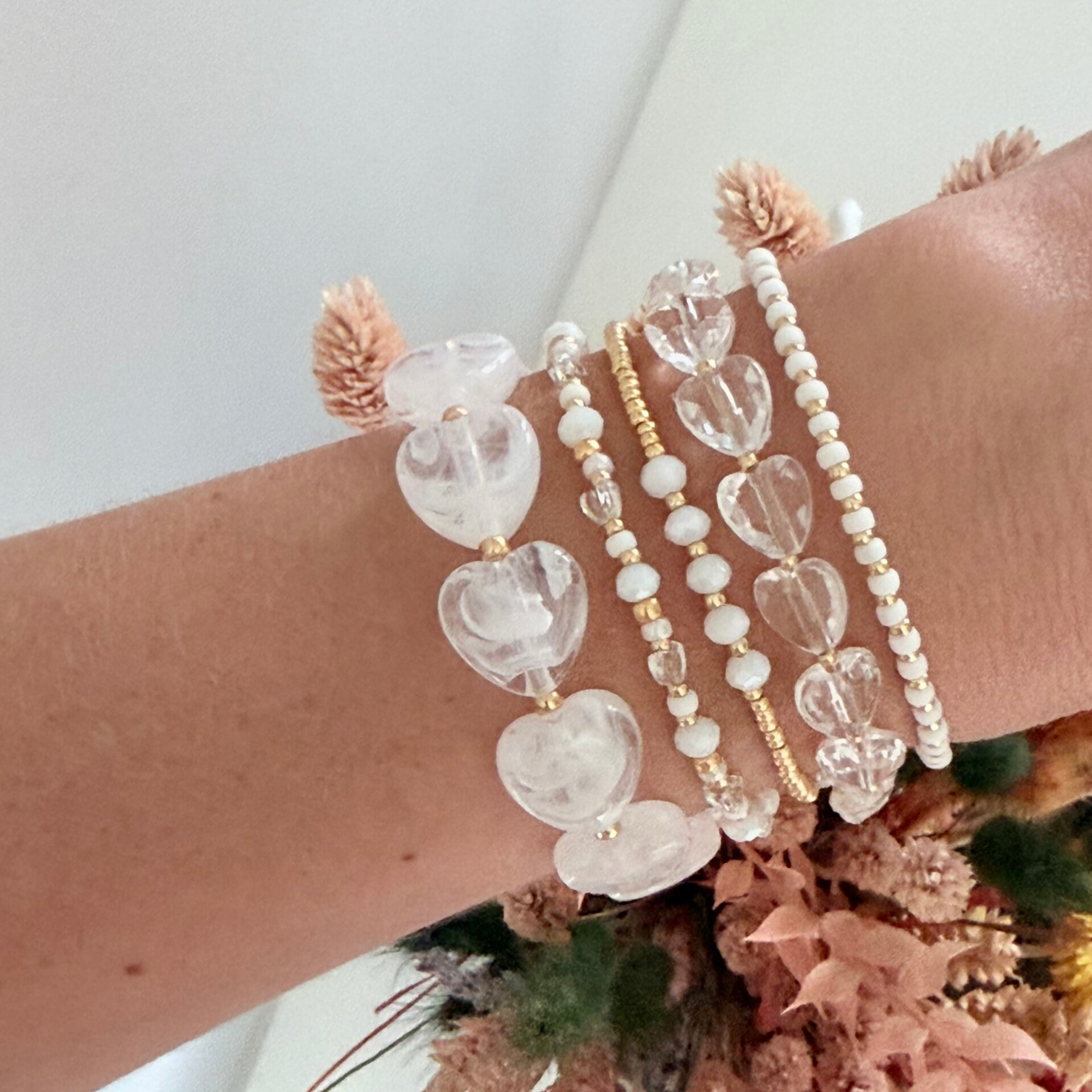 Armband zomer hart melkwit