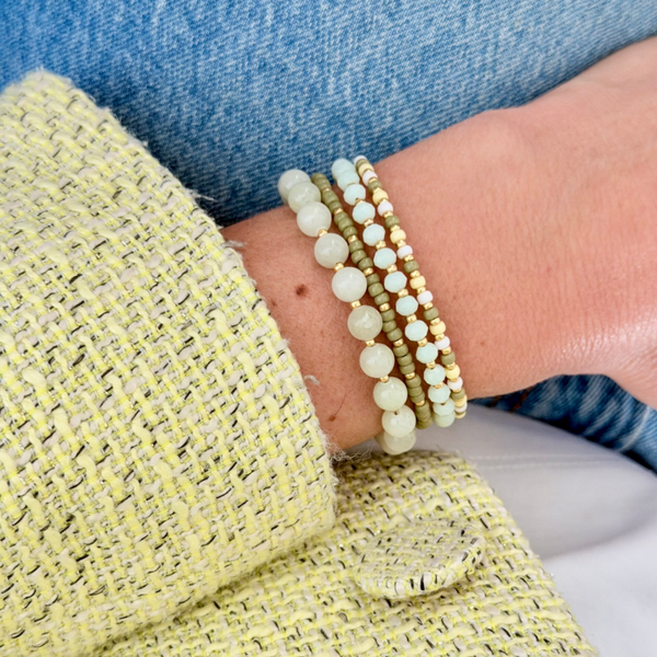De zomer is in zicht, tijd voor meer kleur in je armparty. Hoe leuk om de nieuwe trendkleuren groen, blauw, roze & paars toe te voegen aan je eigen armbandenset en te mixen met de tijdloze witte en beige armbanden.