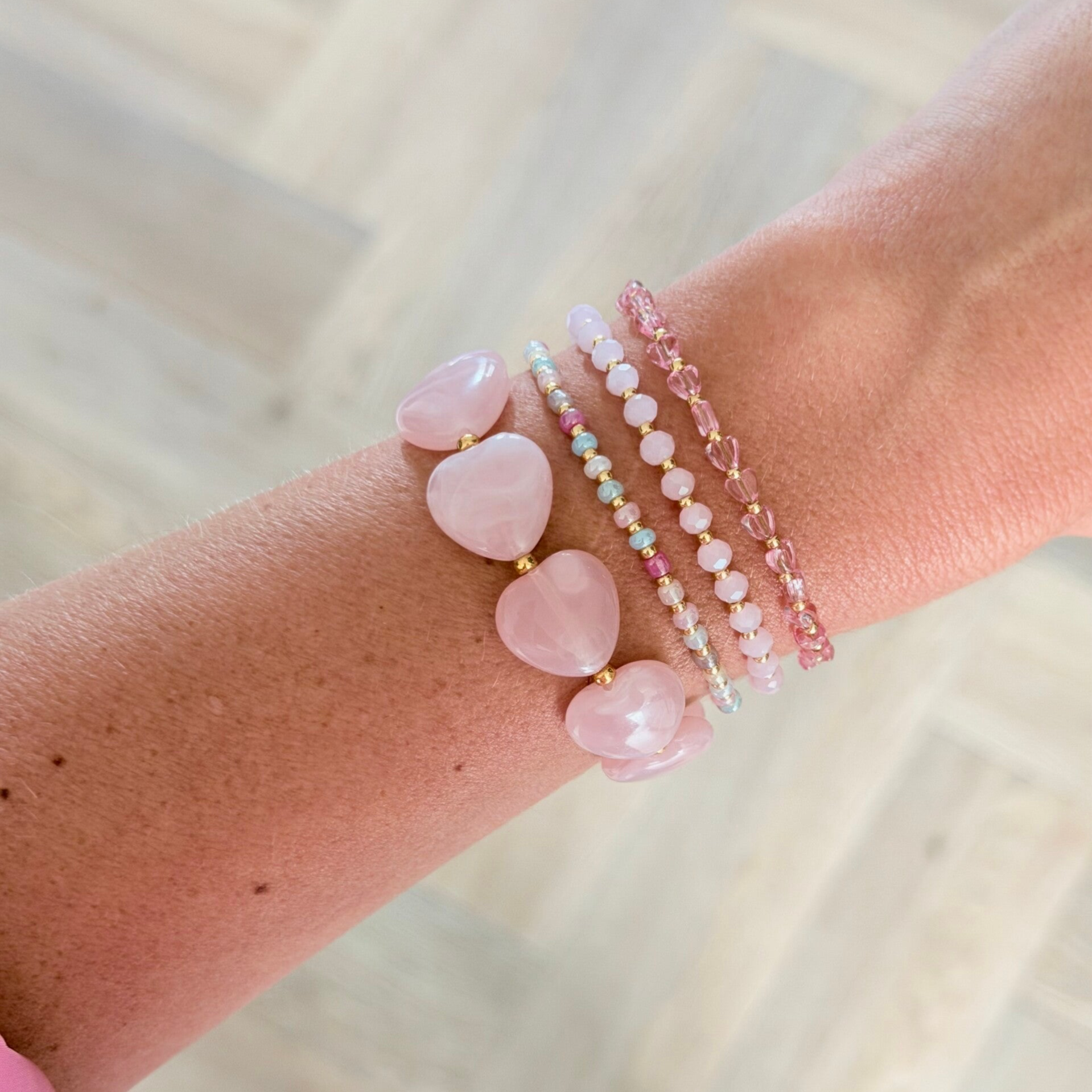 De zomer is in zicht, tijd voor meer kleur in je armparty. Hoe leuk om de nieuwe trendkleuren groen, blauw, roze & paars toe te voegen aan je eigen armbandenset en te mixen met de tijdloze witte en beige armbanden.