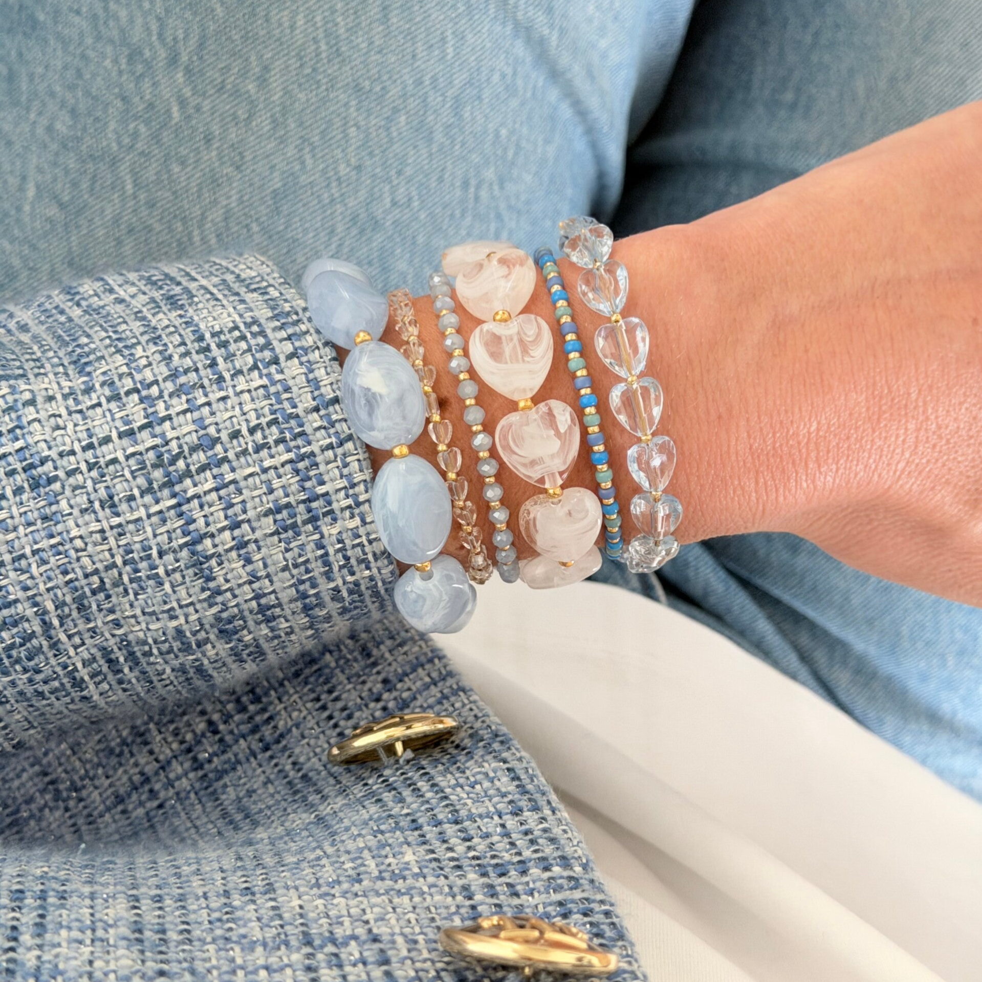 De zomer is in zicht, tijd voor meer kleur in je armparty. Hoe leuk om de nieuwe trendkleuren groen, blauw, roze & paars toe te voegen aan je eigen armbandenset en te mixen met de tijdloze witte en beige armbanden.