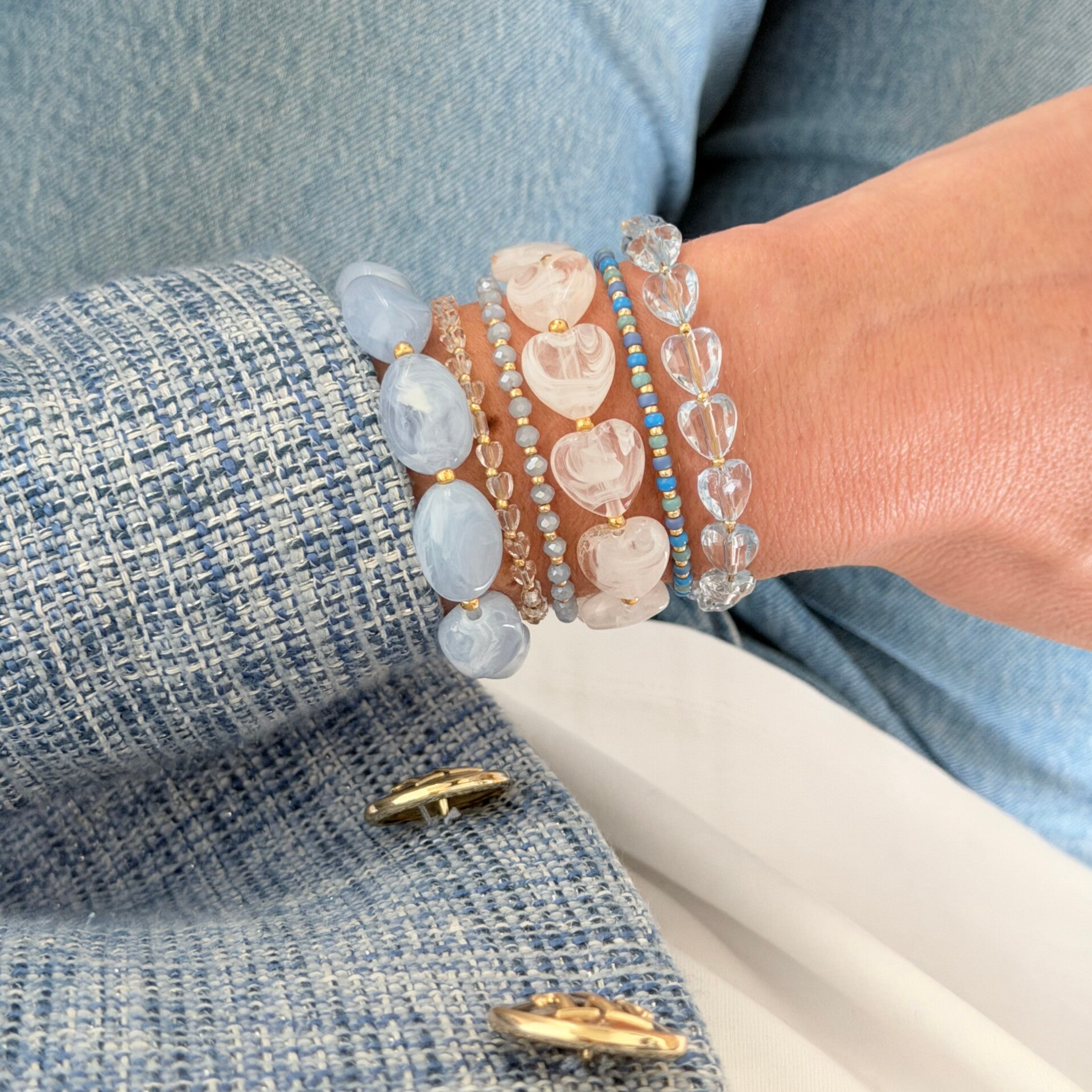 De zomer is in zicht, tijd voor meer kleur in je armparty. Hoe leuk om de nieuwe trendkleuren groen, blauw, roze & paars toe te voegen aan je eigen armbandenset en te mixen met de tijdloze witte en beige armbanden.