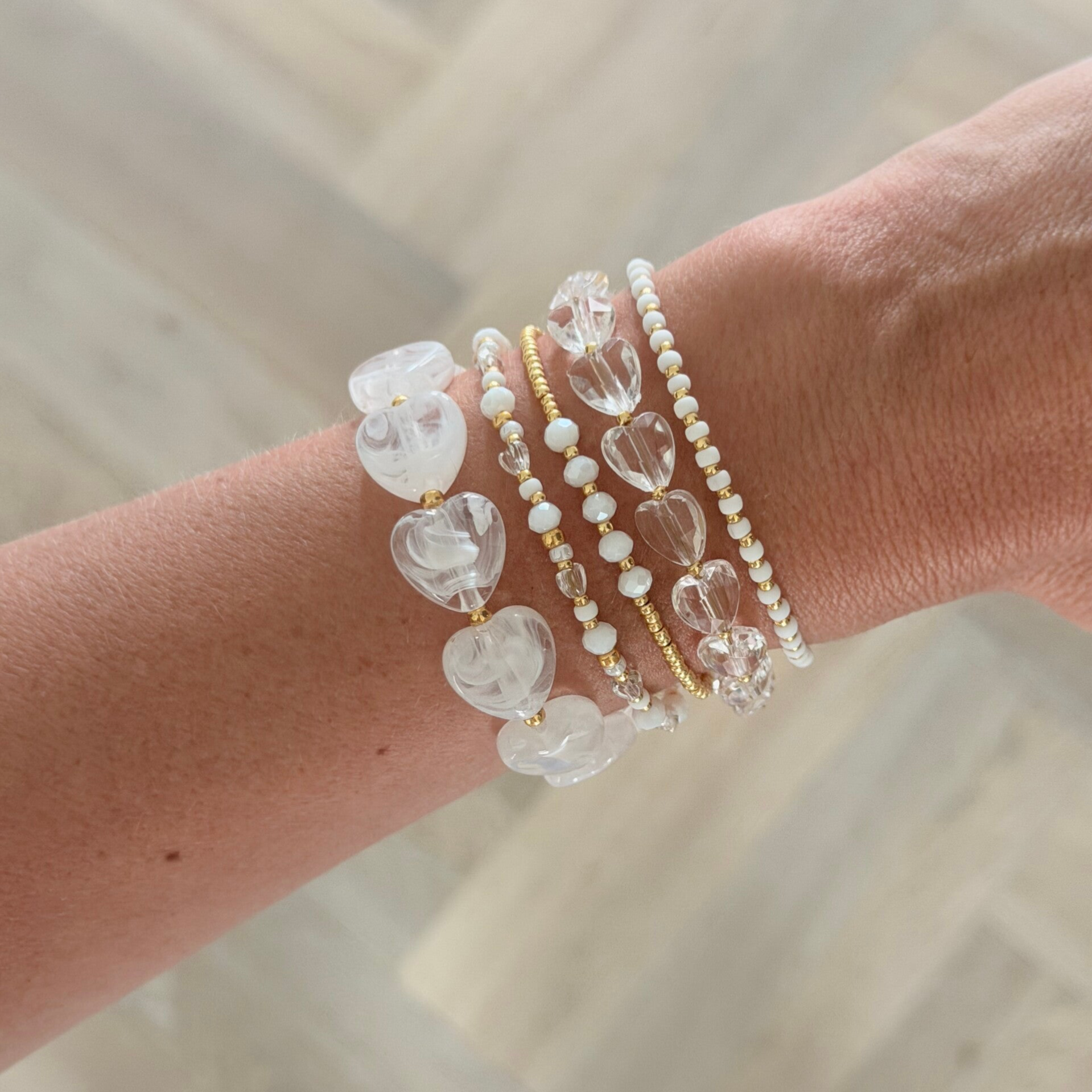 De zomer is in zicht, tijd voor meer kleur in je armparty. Hoe leuk om de nieuwe trendkleuren groen, blauw, roze & paars toe te voegen aan je eigen armbandenset en te mixen met de tijdloze witte en beige armbanden.